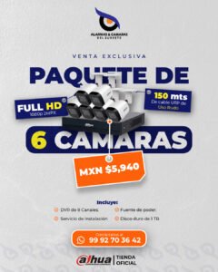 Paquete de 6 cámaras todo incluido $5,940.00 6 Cámaras Bullet de policarbonato, DVR de 8